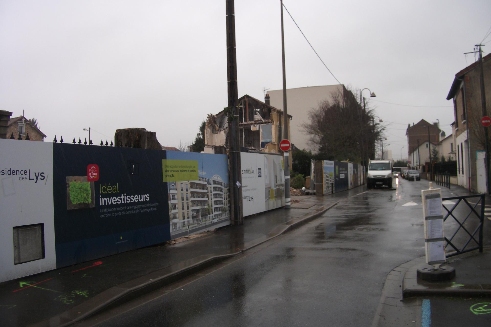 Vu de la rue Pierre Delalet, avant/après la Résidence des Lys en construction ( avril 2019)