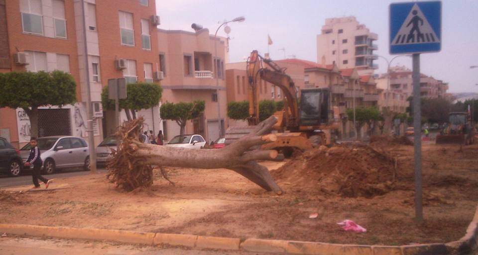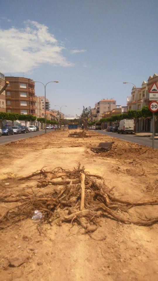 Béatriz habite à El Ejido, dans la province d'Alméria, sur la côte, tout au sud de l'Espagne. Il y avait dans cette ville, une magnifique allée d'arbres d'une trentaine d'années. Le maire veut faire une "carril-bici", une piste cyclable. Doit-il recevoir des crédits ? où ne veut-il pas payer des travaux coûteux à cause des racines qui ressortent ? Toujours est-il que le maire a hâté les choses et qu'en moins d'une semaine, malgré les protestations de la population, il a fait abattre tous les arbres. Un massacre. Une désolation.