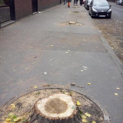 Octobre 2015 : comme une effroyable série, Aubervilliers, 22 peupliers en pleine santé, coupés rue Réchossière
