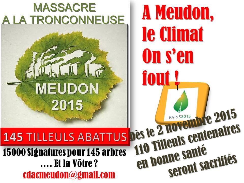 Une pétition est lancée. La précédente en 2010 avait réussi à reculer ce projet...mais le 9 nov, 36 tilleuls sont abattus malgré les cris des habitants et la Présidente du CDAC perchée 5 jours dans un des beaux tilleuls... les 110 autres tilleuls doivent être abattus début 2016